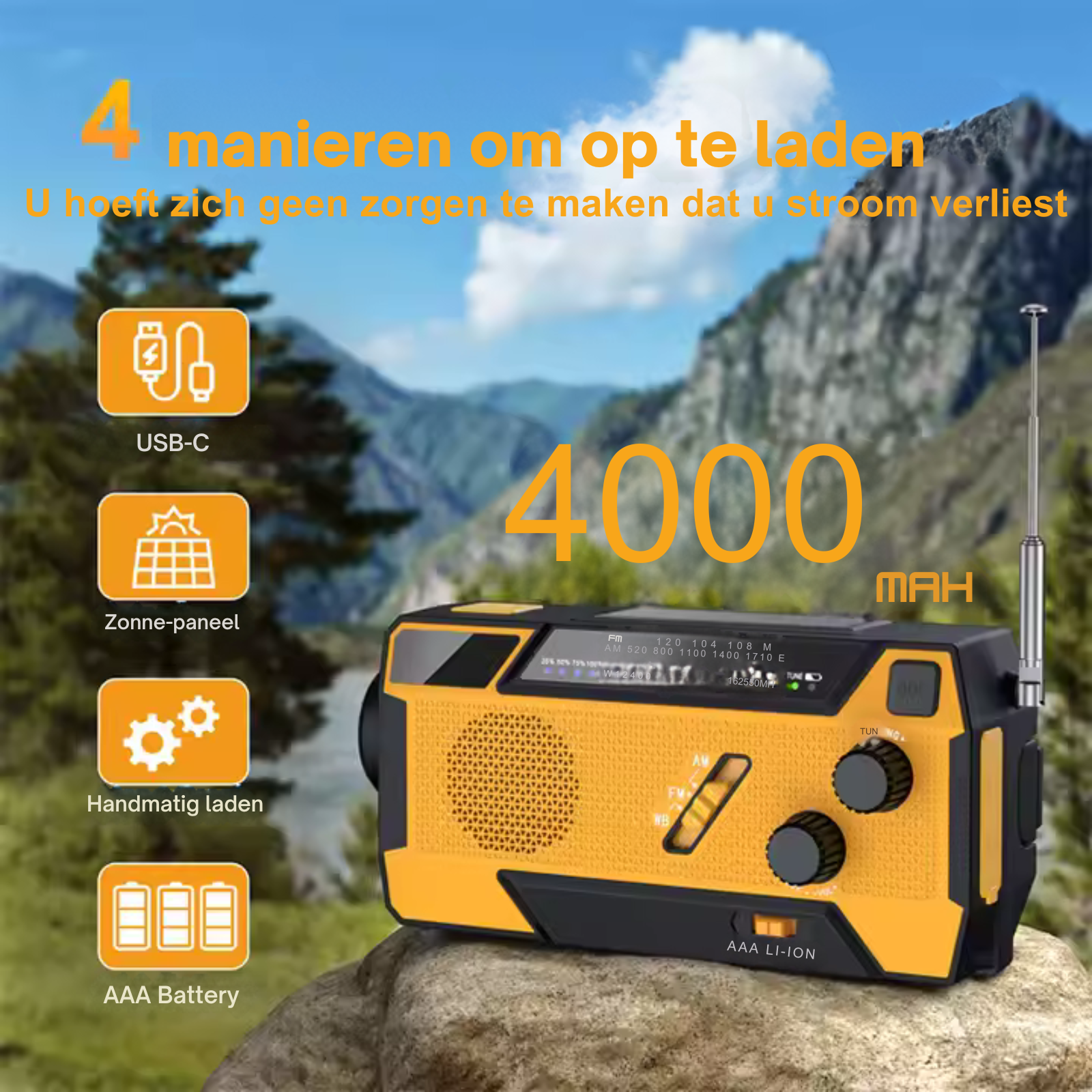 ALL Round Noodradio – AM/FM – Zonne-energie & Handzwengel – 4000 mAh Powerbank Zaklamp Ingebouwd Laad Kabels Zonnepaneel