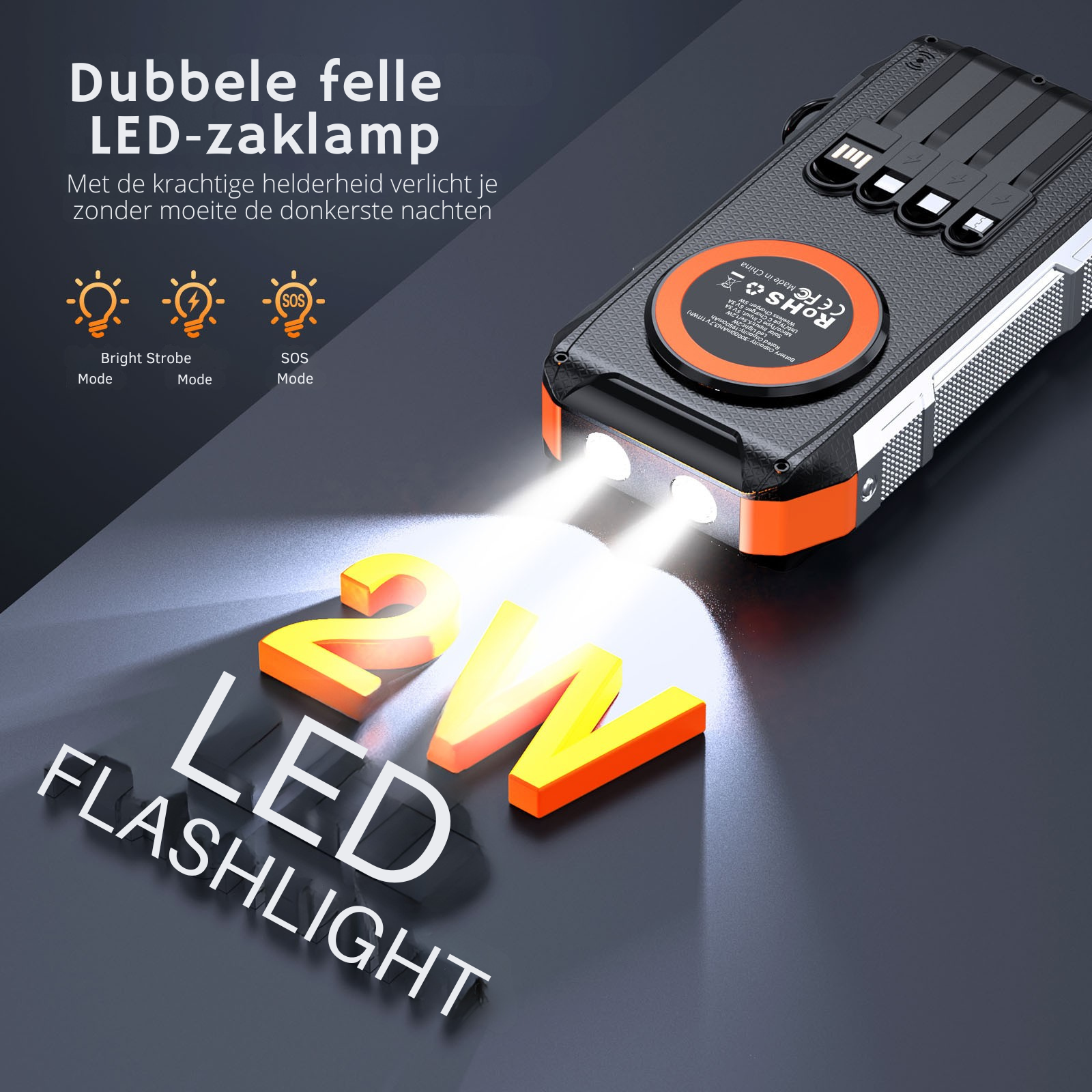 Deze krachtige powerbank op zonne-energie is ideaal voor kamperen, hiking en outdoor avonturen. Ook perfect voor preppers en op vakantie. Laad je iPhone draadloos op met Magsafe, gebruik hem als zaklamp en ga zorgeloos op pad. Vliegtuig-goedgekeurd en een must-have voor elk noodpakket.